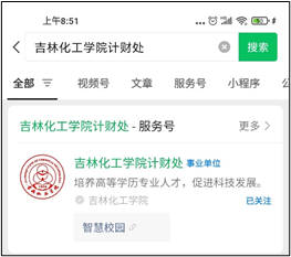 第一步:搜索微信公众号:吉林化工学院计财处;