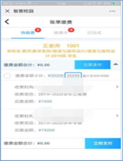 第四步:登录后,点击“账单缴费”,跳转至账单缴费页面,在此页面中可以进行“待缴费”、“已完成”等账单的查询。查询到待缴费账单后,核对收费项目及金额,点击“立即支付”,按步骤提示即可完成缴费。
