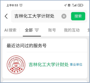 第一步:搜索微信公众号:吉林化工大学计财处;